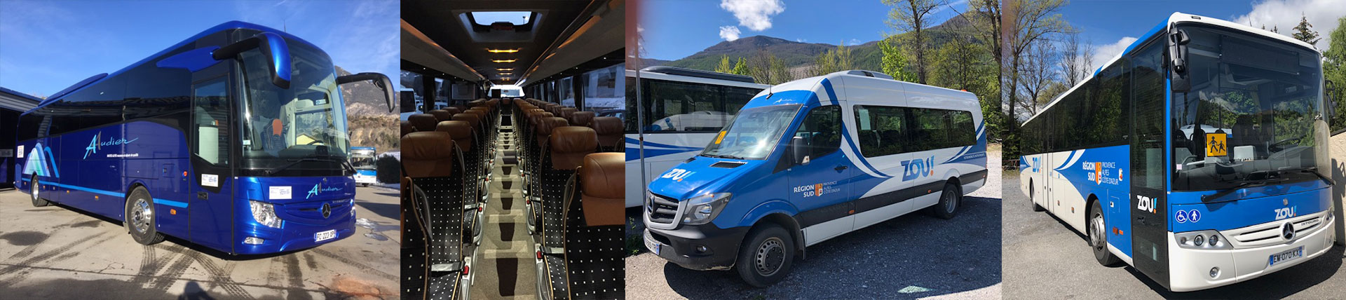 Il est constitué de 4 véhicules 4x4 de moins de 9 places, de 4 de 22 à 28 places, de 7 véhicules de 53 à 63 places